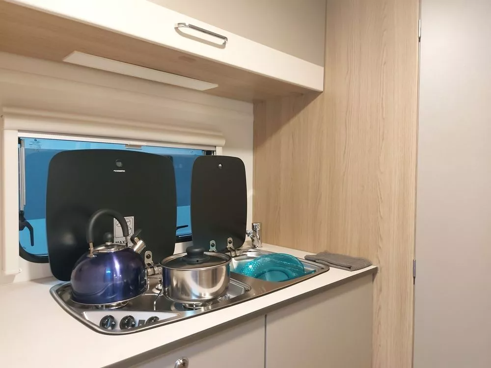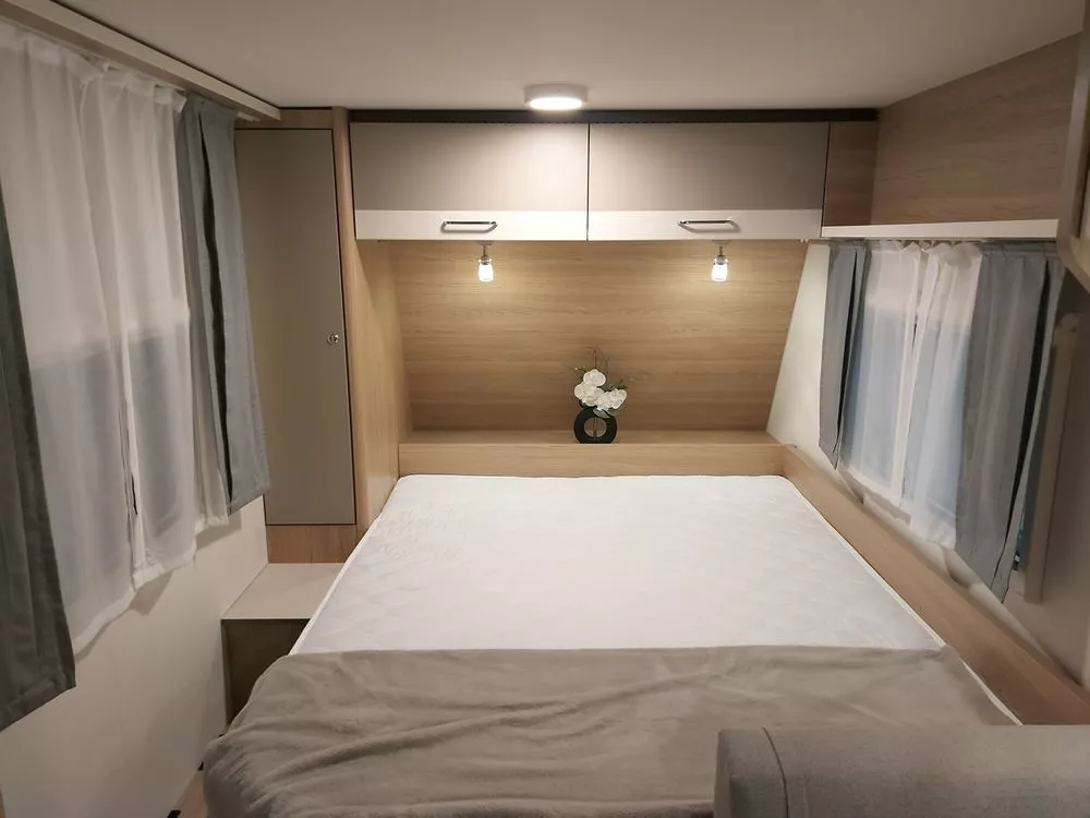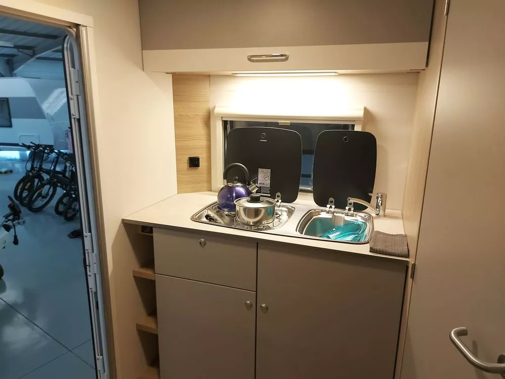 Belle caravane disposant d’une implantation inhabituelle sur une très faible largeur hors tout (2m10) : grand lit « à la française », cuisine située à l’arrière, grand réfrigérateur, cabinet de toilette dotée d’une douche, Nombreux rangements, excellent niveau d’équipements. Garantie étanchéité de 12 ans.